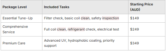 Oz Air group provides clear, all-inclusive pricing tiers based on system size and scope, ensuring no hidden fees and allowing homeowners to choose the level of service that suits their budget.